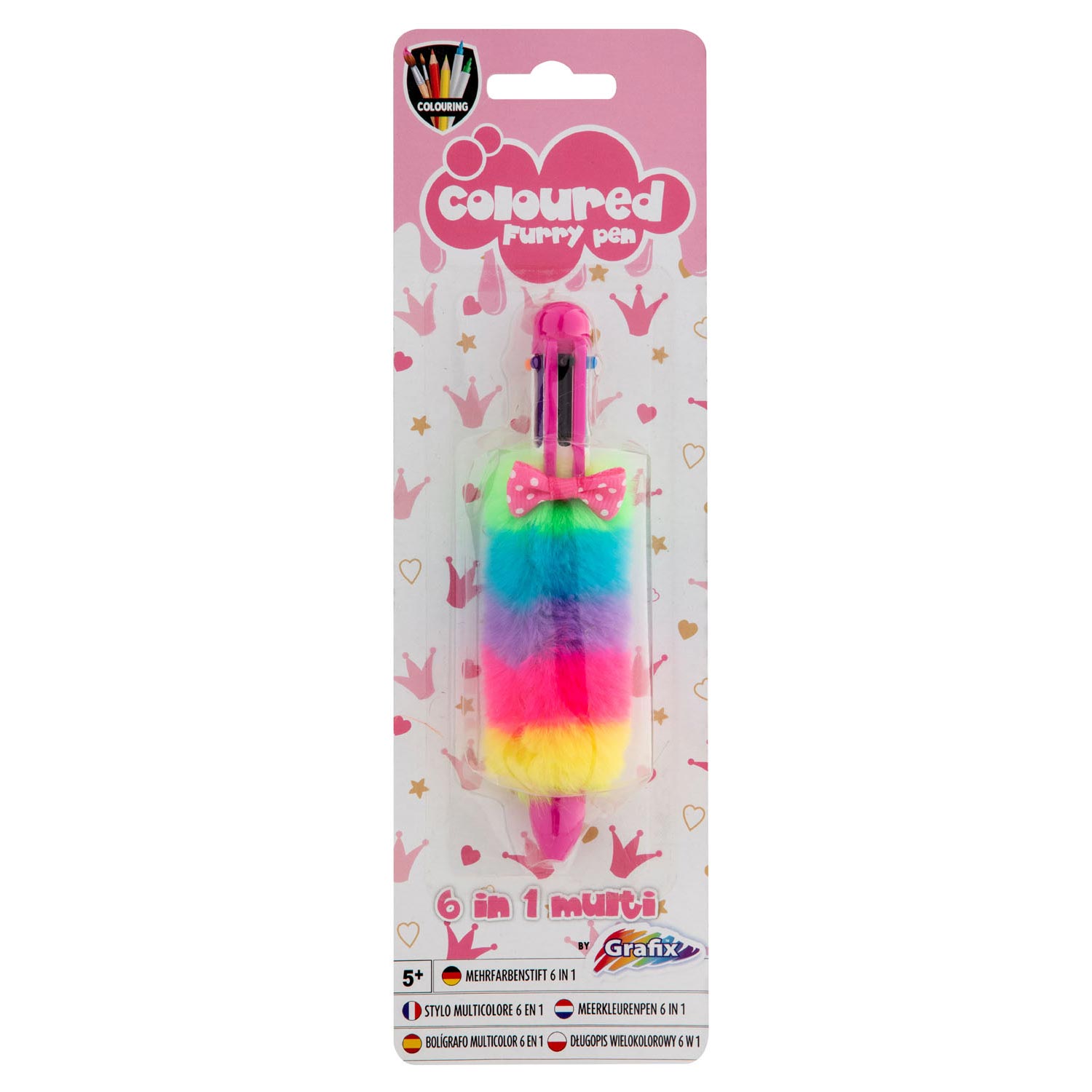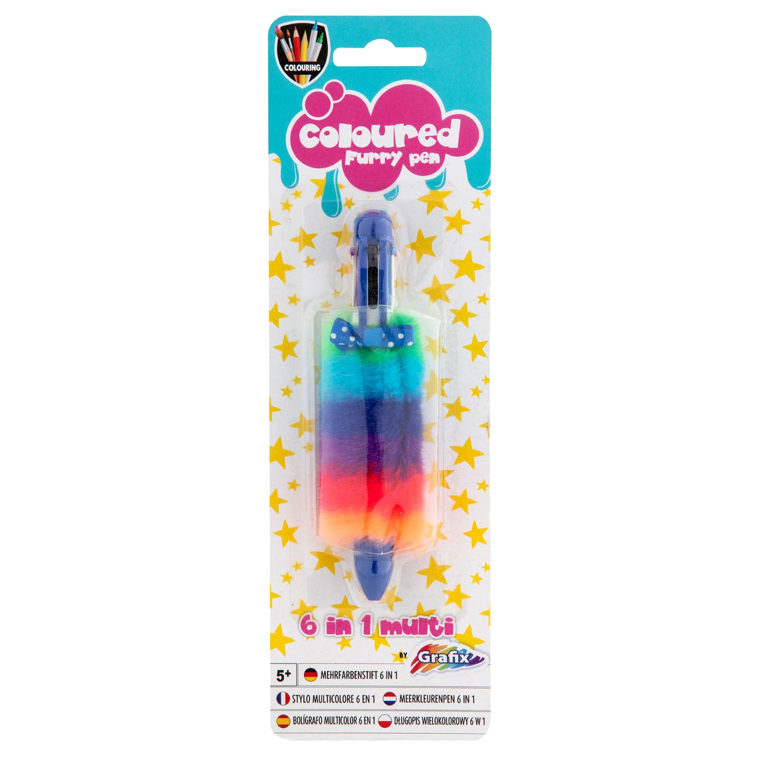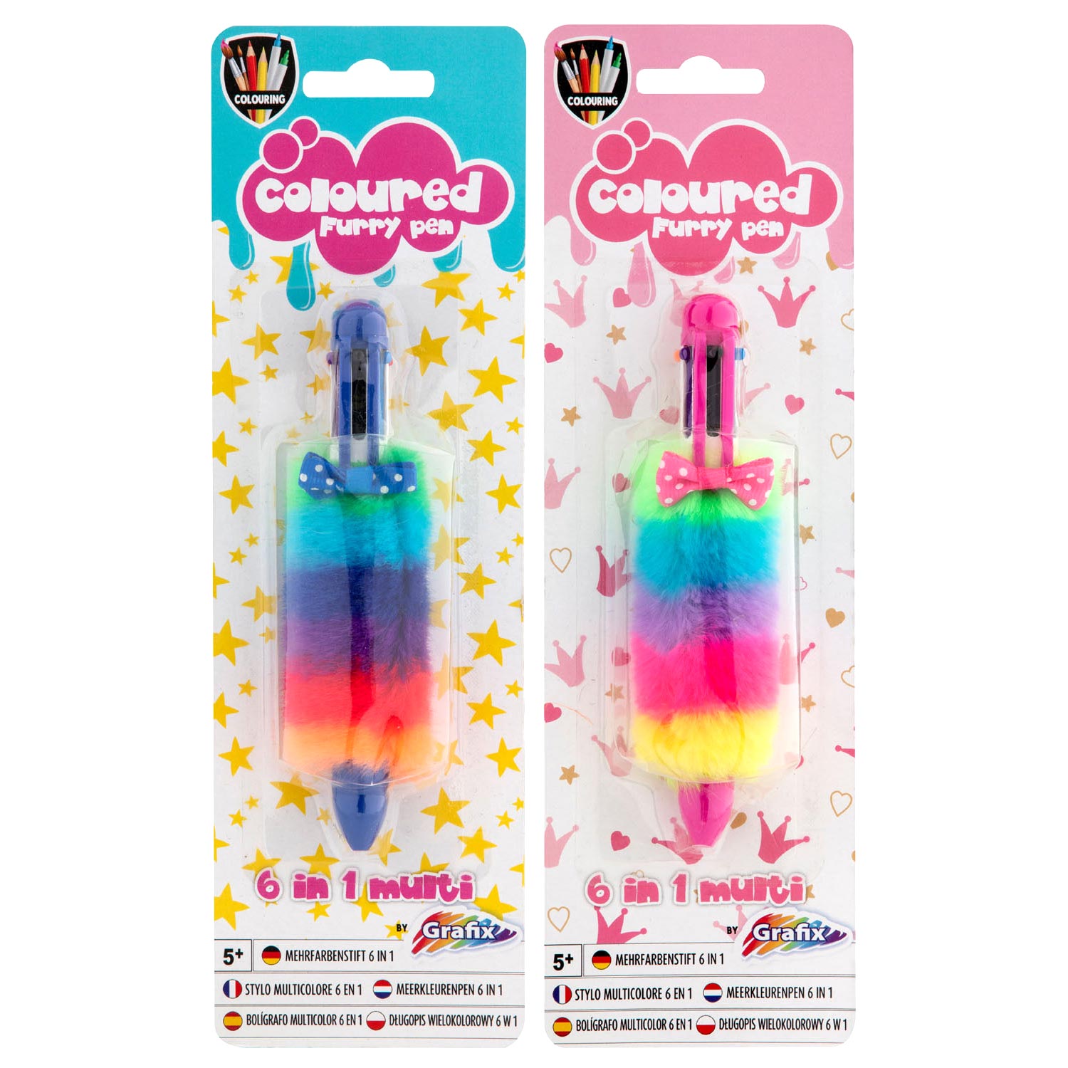 Caneta c/ 6 cores e Pêlo Rosa/Azul